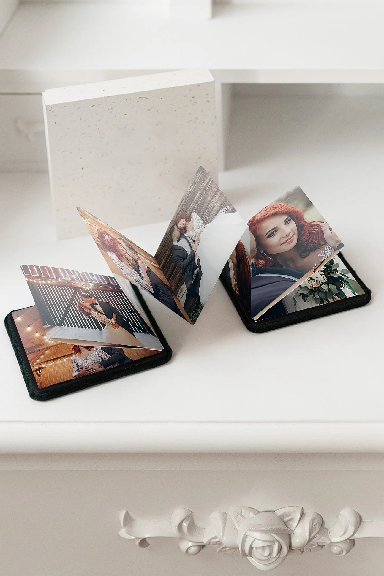 In der Box befinden sich hochwertige Portraitkarten mit euren Bildern. Die einzelnen Prints lassen sich aufstellen, verschenken oder jederzeit austauschen.